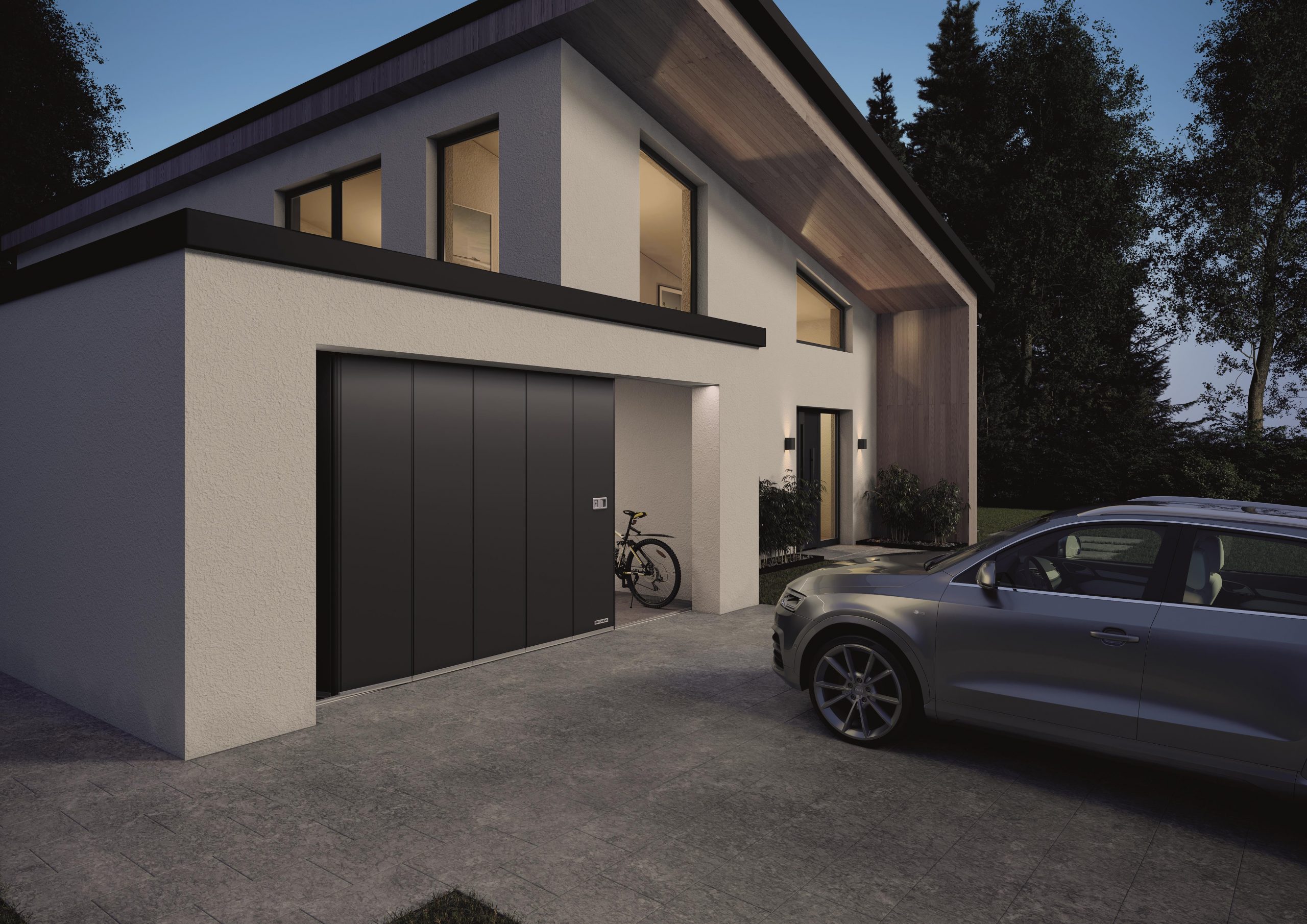 Jedną z wielu zalet bram segmentowych otwieranych pionowo do góry jest to, że po otwarciu są umieszczane pod stropem i nie zabierają miejsca w garażu. Takie rozwiązanie nie sprawdzi się jednak w przypadku niskich garaży, w których otwór wjazdowy dochodzi do stropu lub gdy przestrzeń pod stropem jest zajęta. Do takich miejsc proponujemy niezawodne bramy segmentowe boczne HST 42, które otwierają się na bok i zajmują przestrzeń przy ścianie garażu. Ich dużą zaletą jest opcja częściowego otwierania w celu wprowadzenia, np. roweru lub motocykla. W bramach z napędem szerokość częściowego otwarcia można dostosować do indywidualnych potrzeb. Bramy boczne HST 42 zbudowane są z segmentów stalowych o grubości 42 mm, wypełnionych pianką PU i cechują się bardzo dobrą izolacyjnością cieplną oraz bezpieczeństwem użytkowania. Podobnie jak bramy pionowe wyposażone w napęd, posiadają funkcję mechanicznego ryglowania w szynie napędu, która skutecznie zabezpiecza je przed próbą „siłowego” otwarcia przez niepożądane osoby.