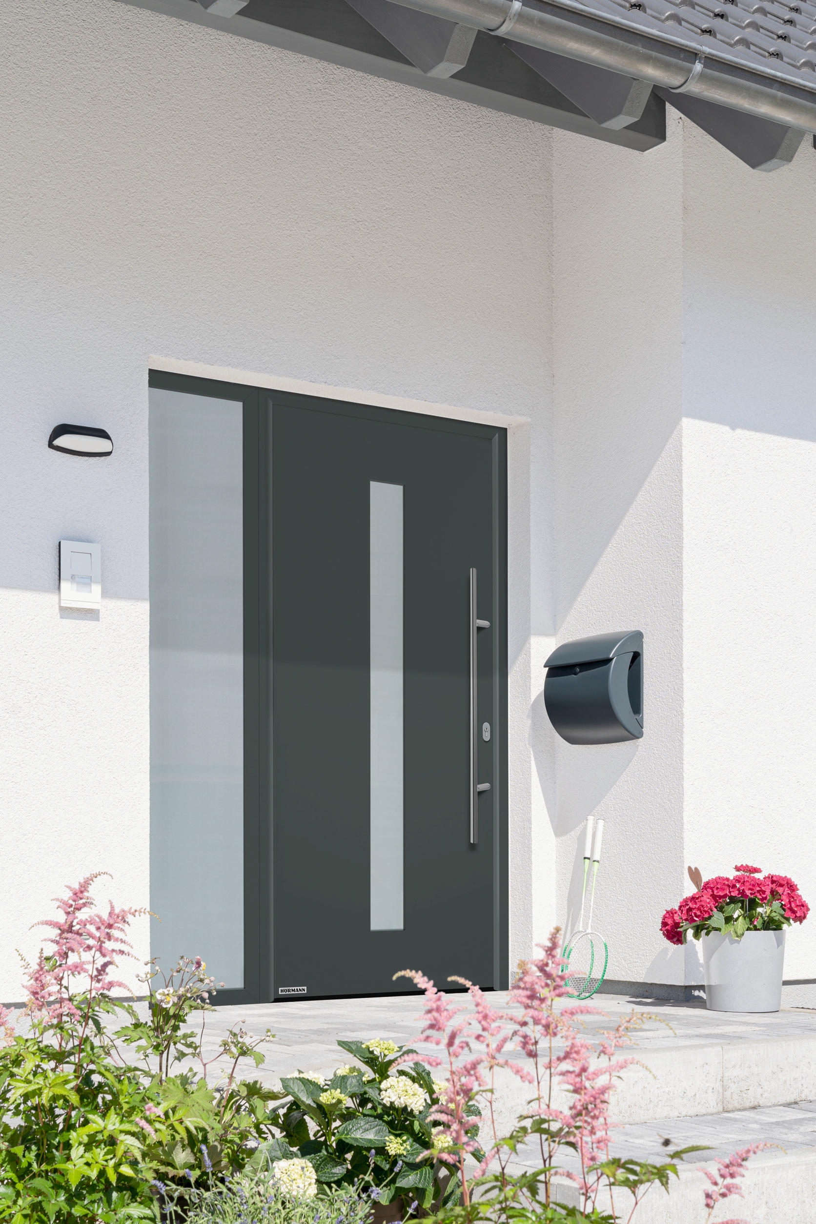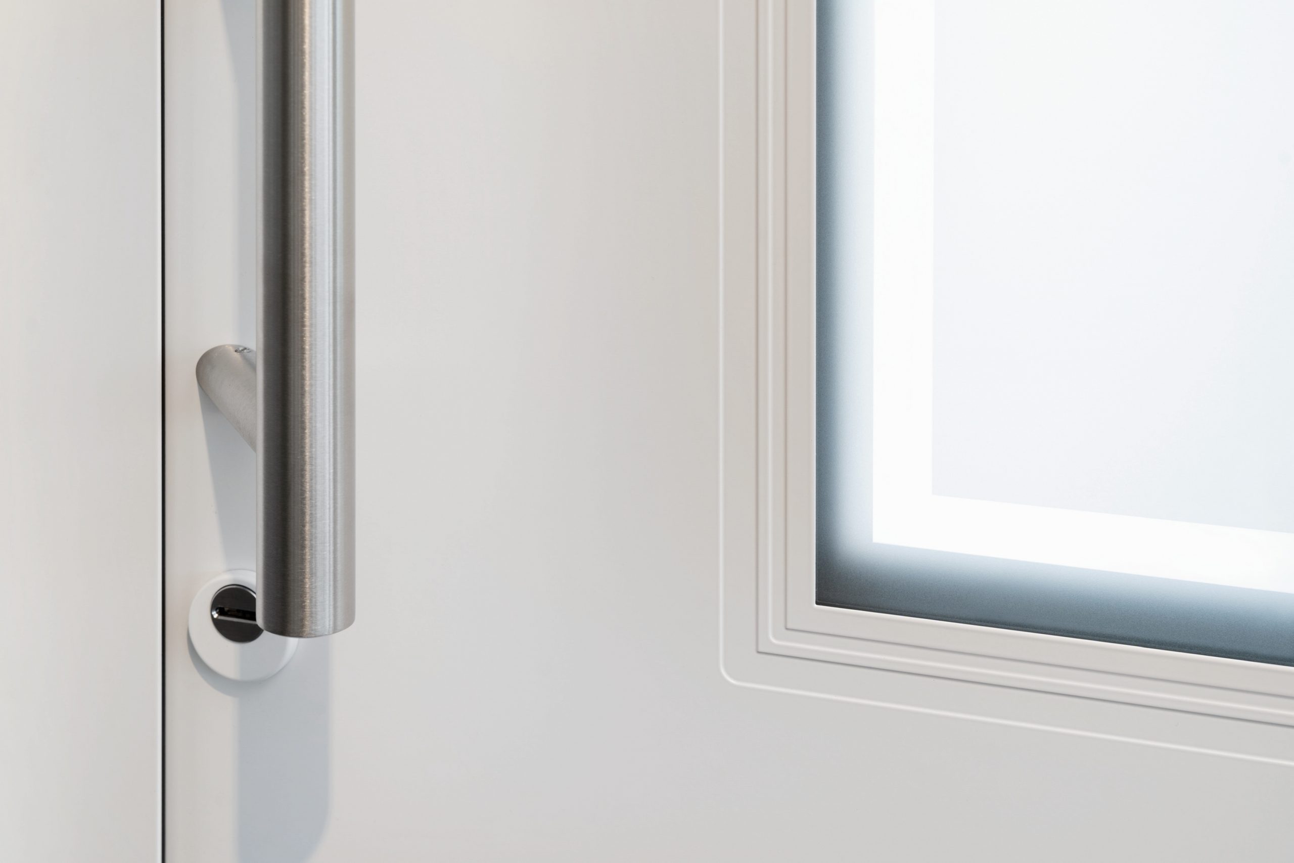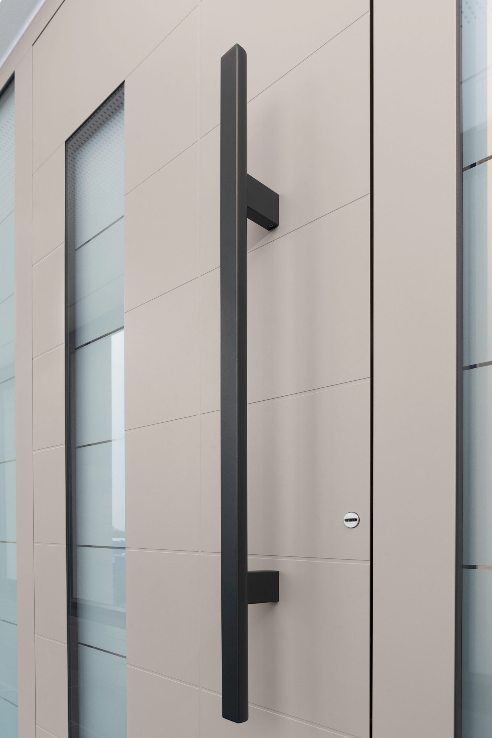 stalowo-aluminiowe drzwi Thermo65. Okucia drzwi zewnętrznych mogą również tworzyć harmonijną całość z okuciami black.edition przeznaczonymi do drzwi pokojowych wewnątrz mieszkania.