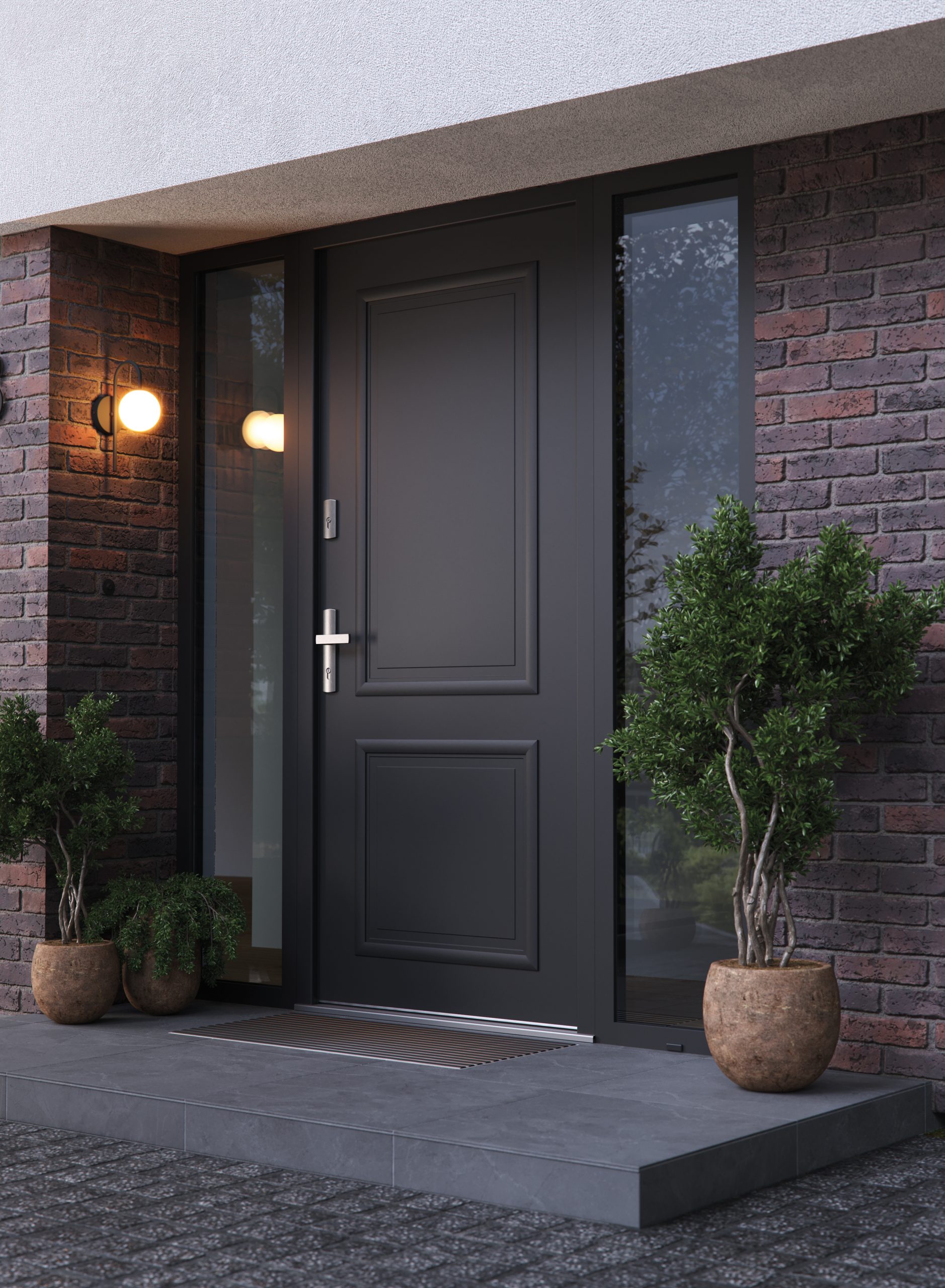 - PORTA THERMO MODERN: Eleganckie, minimalistyczne drzwi z satynowo gładką powierzchnią i pionowym panelem dopasowanym kolorystycznie do okuć. Doskonały wybór do nowoczesnych i loftowych wnętrz.