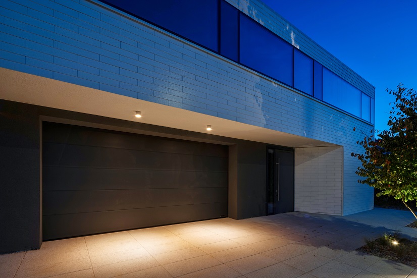 W garażu zastosowano bramę segmentową WIŚNIOWSKI PRIME – rozwiązanie klasy premium, które łączy design, bezpieczeństwo i doskonałą izolacyjność termiczną. Jej gładka, grafitowa powierzchnia stanowi naturalne przedłużenie elewacji parteru, podkreślając minimalistyczny charakter bryły. Dzięki innowacyjnym rozwiązaniom konstrukcyjnym, brama PRIME gwarantuje cichą pracę, szczelność oraz wysoki komfort użytkowania.