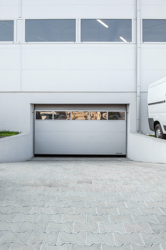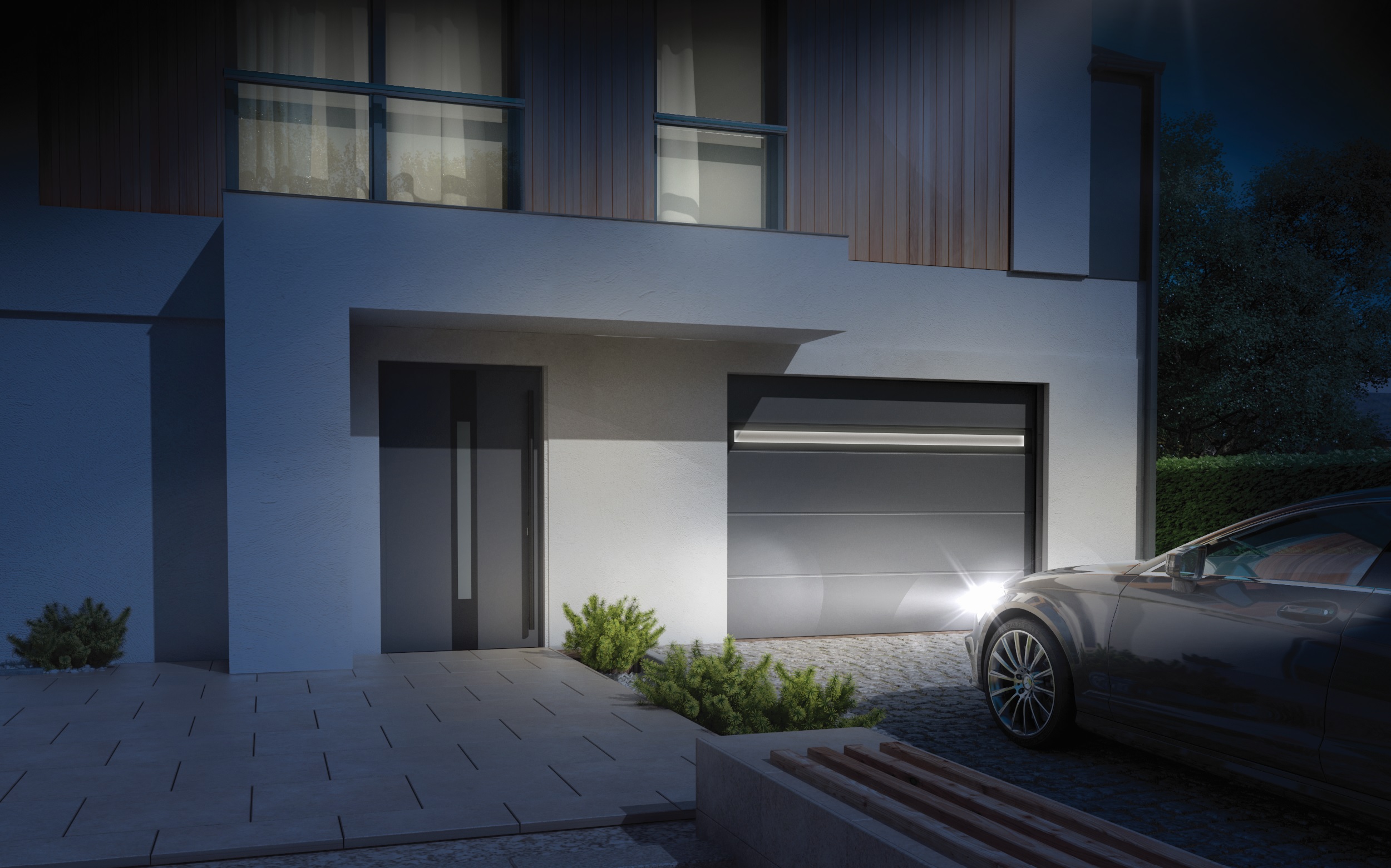 W bramie można zastosować jedno przeszklenie panelem HORIZON. Jest on montowany pomiędzy przedostatnim a ostatnim panelem licząc od dołu. Dzięki temu światło ulega rozproszeniu w pomieszczeniu na wysokości oczu dorosłego człowieka. To pozwala także na zachowanie właściwej proporcji z zewnątrz.