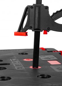Stół Proline 62001 posiada także gniazda elektryczne, liniał i kątownik. Co ważne, wykonany został on z trwałych materiałów: malowanej proszkowo stali, tworzywa ABS i aluminium. Samopoziomujące nakładki na nogach eliminują kołysanie, co zwiększa bezpieczeństwo i precyzję podczas pracy.
