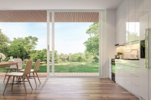 By harmonijnie połączyć wnętrze domu z tarasem, dąży się do maksymalnego obniżenia wysokości progu. Zależnie od wybranego systemu możemy uzyskać przejście całkowicie pozbawione barier lub z niskim progiem. Opcja bezprogowa dostępna jest w standardzie w systemach podnoszono-przesuwnych. W niektórych modelach, np. vetrex AluSlide, poprzez odpowiedni montaż można wykonać próg zlicowany z posadzką. Innym rozwiązaniem, zastosowanym np. w drzwiach vetrexMotion i vetrexMotion max, jest specjalna nakładka wyrównująca. Niski próg, którego wysokość wynosi ok. 2-3 cm, stanowi dodatkowe wyposażenie systemów rozwiernych i rozwierno-uchylnych (np. Vetrex Opti, Vetrex LUM’UP, Vetrex V82).