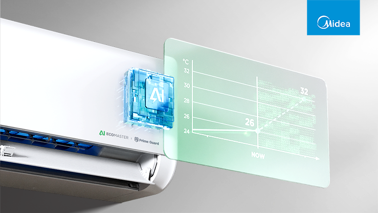 Sercem Midea Solstice jest technologia AI EcoMaster, która na podstawie analizy danych w czasie rzeczywistym przewiduje obciążenie cieplne i optymalizuje działanie urządzenia. Dzięki temu klimatyzator działa szybciej, zużywając mniej energii i zapewniając bardziej stabilną temperaturę w pomieszczeniu, zmniejszając straty energii aż o 30% w porównaniu do tradycyjnych urządzeń.