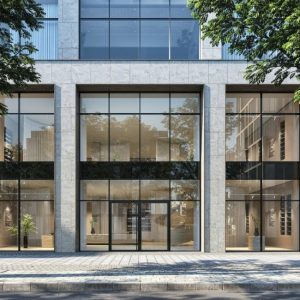 W obszarze zoptymalizowanych kosztowo fasad aluminiowych Schüco proponuje system AF LDC 50 w układzie rygiel-rygiel o widocznej szerokości profilu 50 mm. Koncepcja Lean Design Construction zakłada uproszczenie konstrukcji przy zachowaniu wymaganych parametrów statycznych i cieplnych. Zastosowanie jednego typu profilu, jednej obwodowej uszczelki oraz zmodyfikowanych łączników typu T pozwala ograniczyć liczbę operacji warsztatowych i zwiększyć powtarzalność wykonania. System osiąga współczynnik Uf do 0,79 W/(m²K) i umożliwia stosowanie wypełnień o masie do 790 kg. Rozwiązanie znajduje zastosowanie w prostych fasadach obiektów komercyjnych i mieszkaniowych, gdzie istotne znaczenie ma kontrola budżetu przy zachowaniu estetyki i trwałości. Uzupełnieniem platformy są drzwi Schüco AD UP 75 BL. Skrót BL oznacza Basic Line – linię systemową zaprojektowaną w oparciu o te same założenia optymalizacyjne. Modułowa konstrukcja z uszczelką środkową pozwala uzyskać współczynnik Ud = 1,3 W/(m²K) oraz odporność na włamanie do klasy RC3. Pełna kompatybilność z fasadą AF LDC 50 oraz systemami okiennymi i przesuwnymi umożliwia projektowanie spójnych pod względem estetycznym oraz technicznym stref wejścia w ramach jednej platformy systemowej. Dla inwestora i wykonawcy oznacza to mniejsze ryzyko projektowe, uproszczoną logistykę oraz pełną przewidywalność efektu.