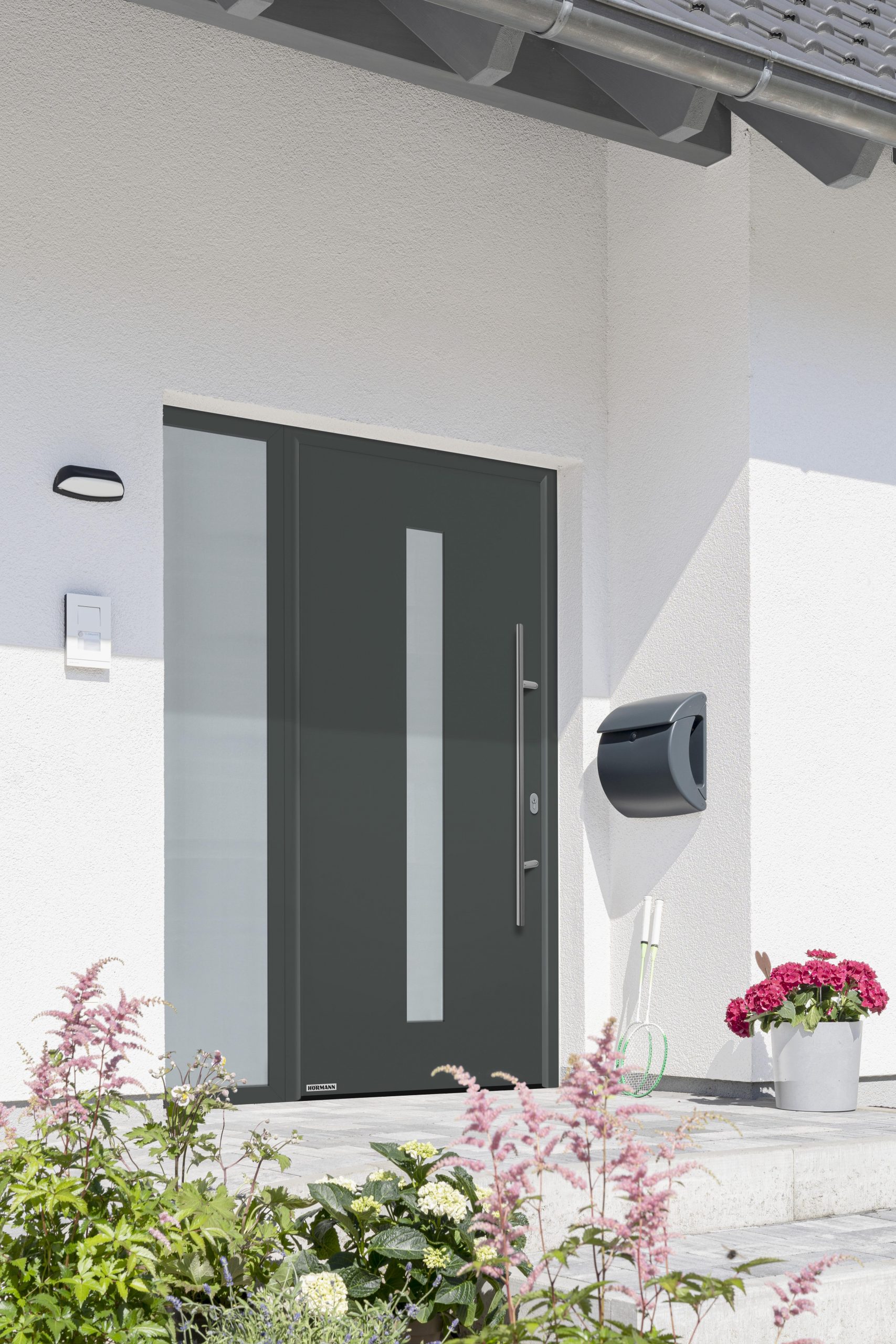 Drzwi zewnętrzne powinny być trwałe i solidne, a przy tym ciepłe, bezpieczne oraz atrakcyjne pod względem wizualnym. Te kryteria spełniają drzwi Thermo65 marki Hörmann ze stalową płytą drzwiową o grubości 65 mm wypełnioną twardą pianką PU. Płyta drzwiowa oraz aluminiowa ościeżnica drzwi wyposażone zostały w przegrodę termiczną, dzięki czemu współczynnik izolacyjności cieplnej UD wynosi nawet ok. 0,87 W/(m2·K).