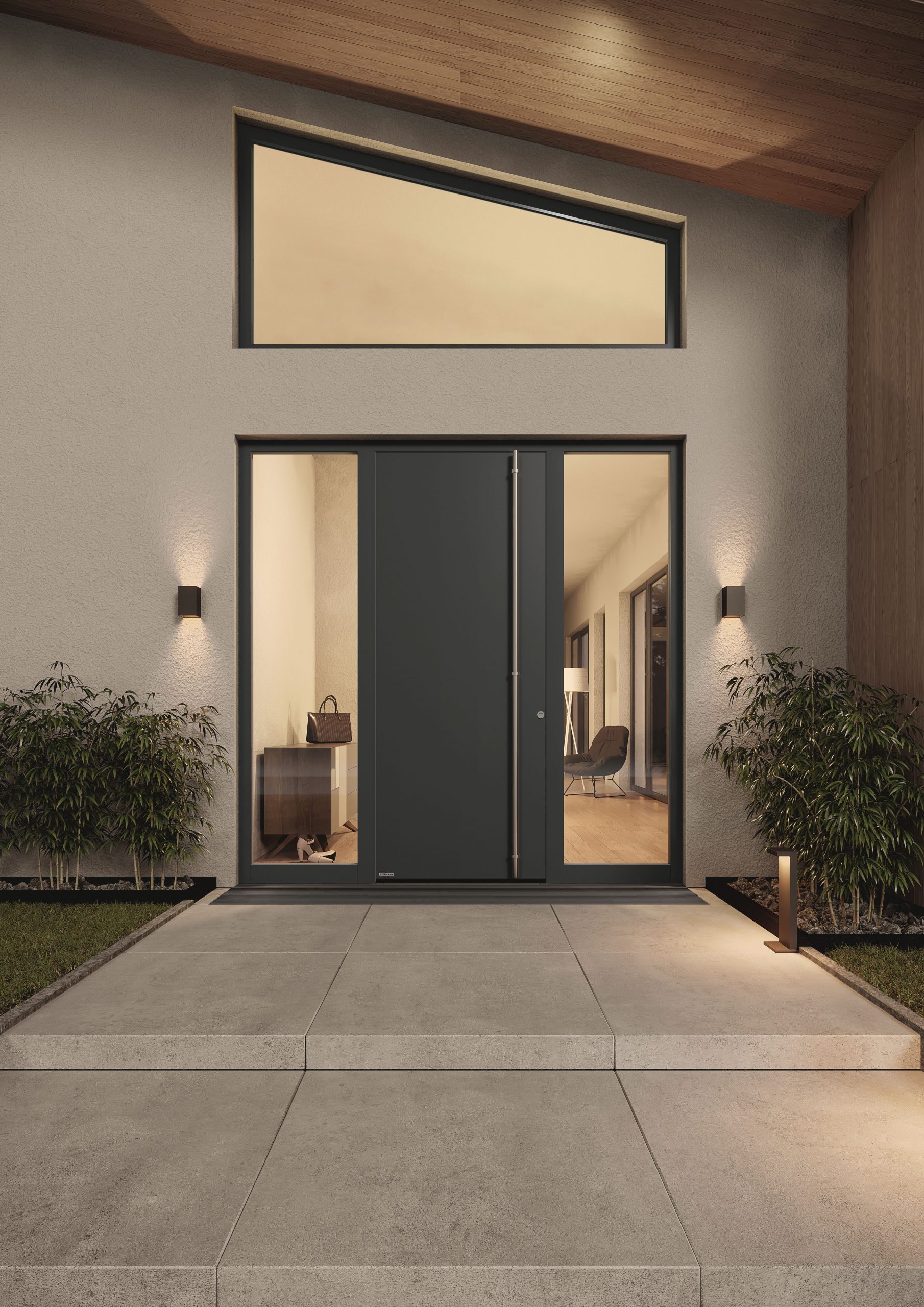 Drzwi ThermoSafe wzór 860, kolor RAL 7016, uchwyt ze stali nierdzewnej, opcjonalne elementy boczne
